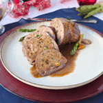 Solomillo de cerdo relleno de boletus, una propuesta elegante que une la suavidad del solomillo con el carácter de los boletus y el toque de la fruta deshidratada, dando como resultado un asado aromático y equilibrado.